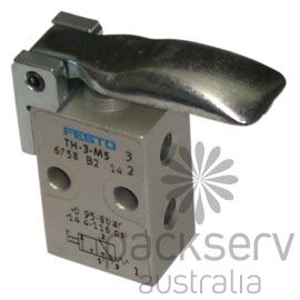 3 Port 2 Position Valve Finger Actuated Normally Closed. Die-cast Zinc with Through Holes for Mounting M5 Female Threaded Ports