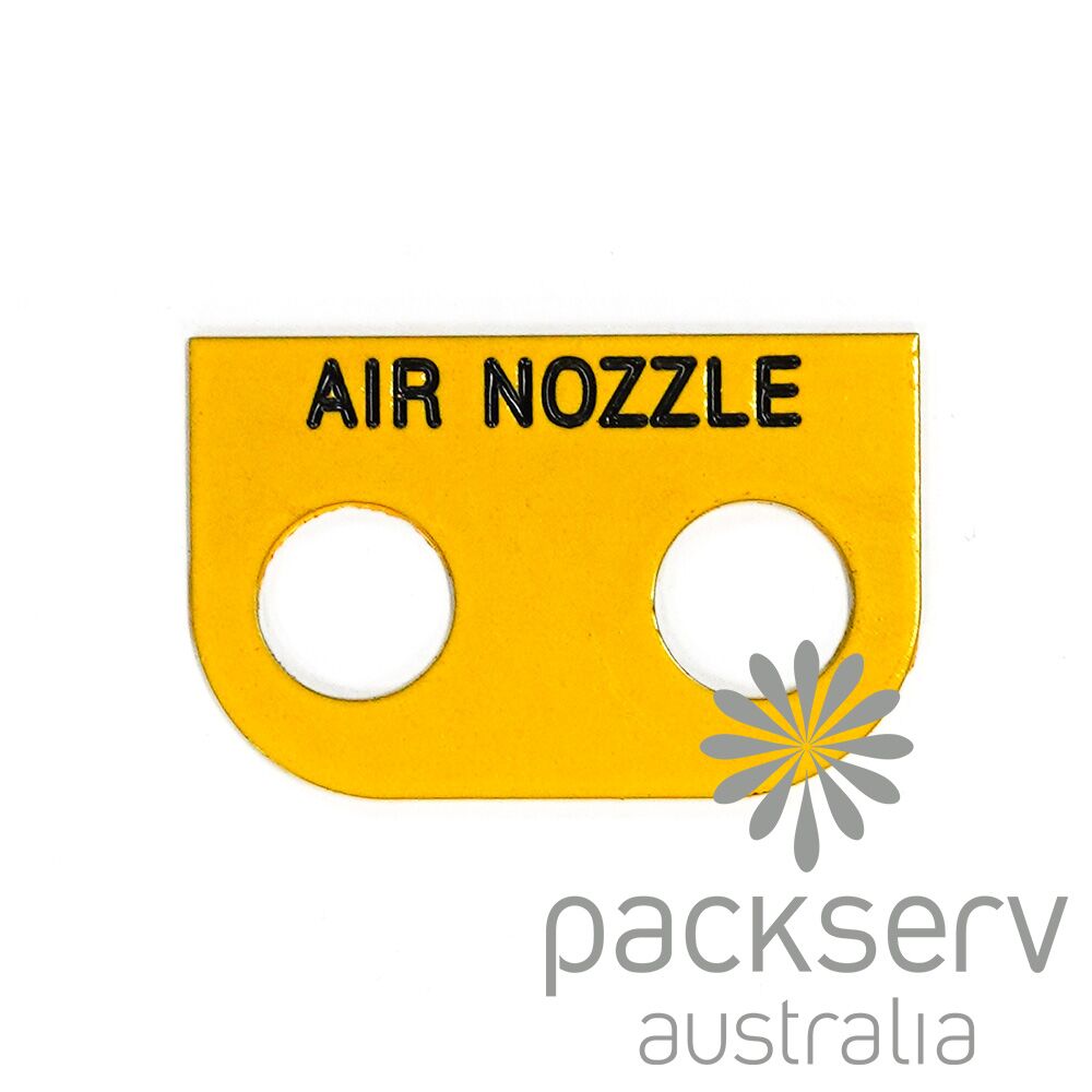 The Air Nozzle Label Plate by Packserv is built for durability and precision, crafted from high-quality steel to withstand rigorous industrial use working with any product suitable for our packaging machinery.