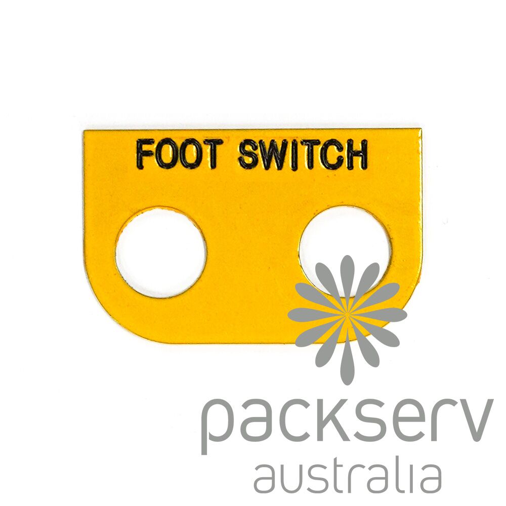 The Foot Switch Label Plate by Packserv is durable and simple. Crafted from high-quality steel to withstand constant industrial use and products.