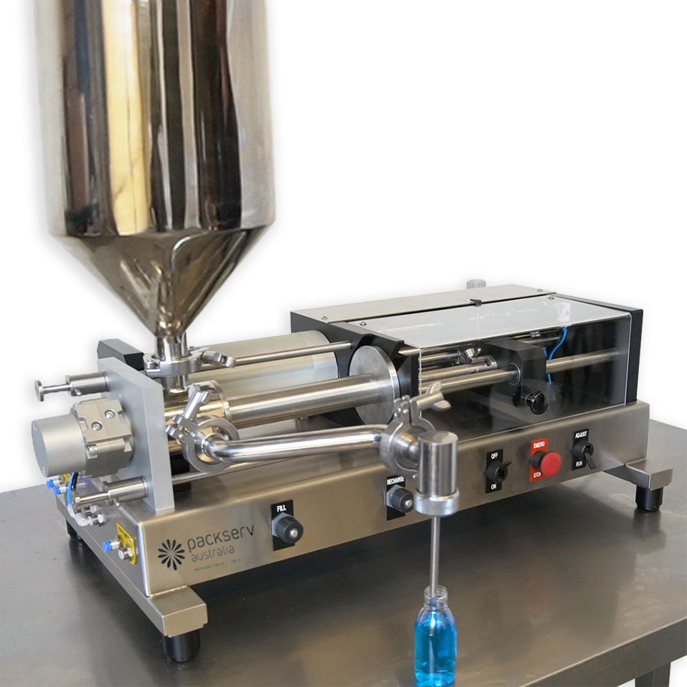 Packserv’s PFM-3-BUF Single Head Bottom Up Filler (BUF) is a semi-automatic liquid, paste and cream filling machine, suitable for use with FMCG, pharmaceutical, cosmetic and chemical applications. The heavy duty, all pneumatic design of the PFM-3-BUF is compact, reliable and easy to clean. This machine is suitable for bench-top use.