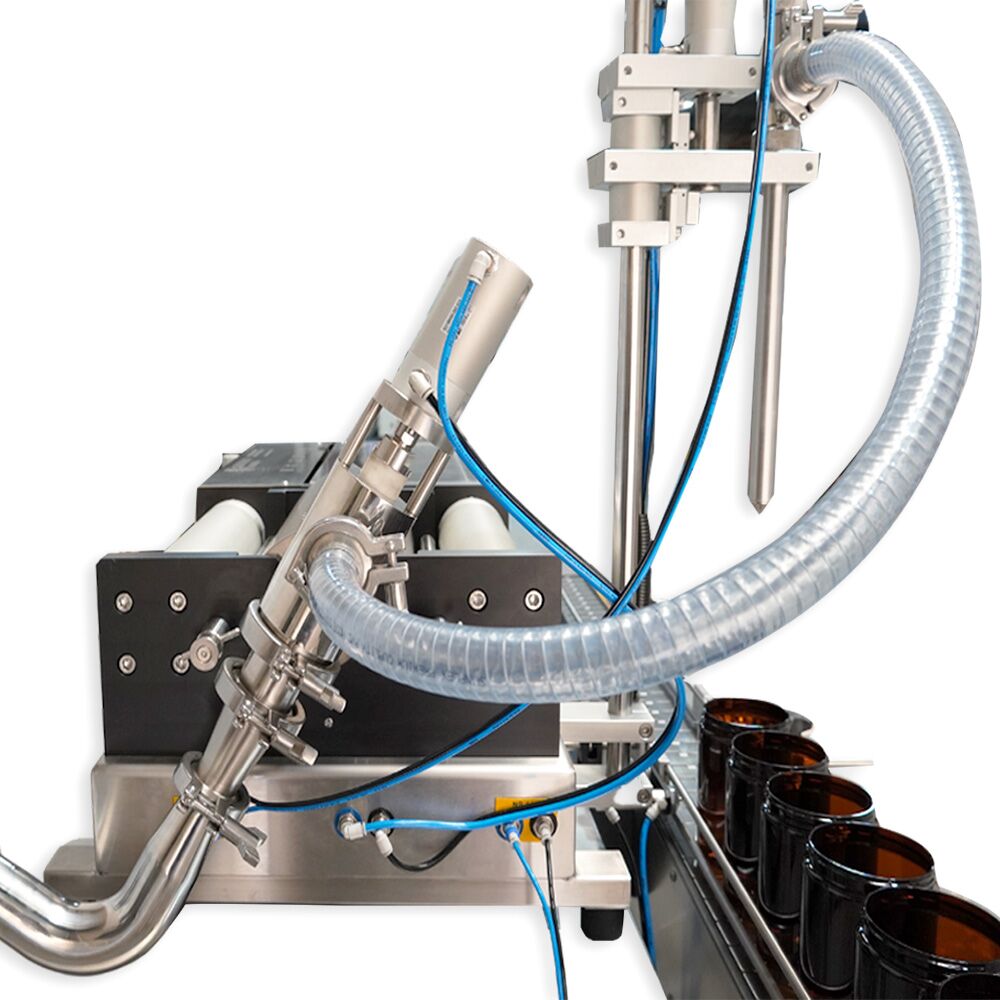 The PFM-5-BUF also comes standard with positive shut-off nozzle and a bottom up fill assembly. The spool-valve system of the filler handles all types of bottling products. It is capable of processing thin liquids, to creams and thick pastes as well as hot and cold filling. This equipment can handle temperatures of up to 95°C (203 F) with ease.