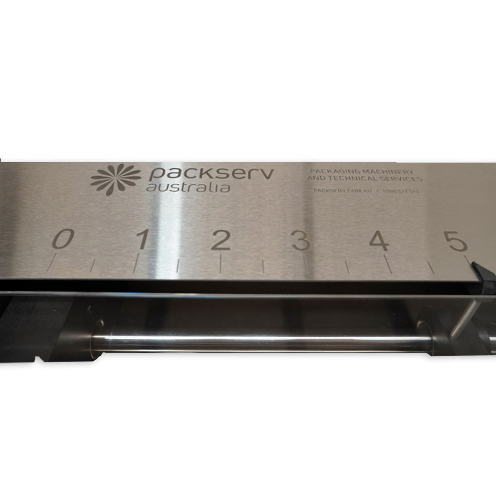 The stroke adjuster and air/product cylinder drive assembly is enclosed with a safety interlocked poly-carbonate cover, stopping the machine if opened by operator.