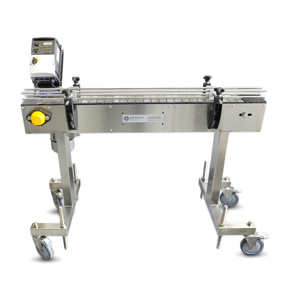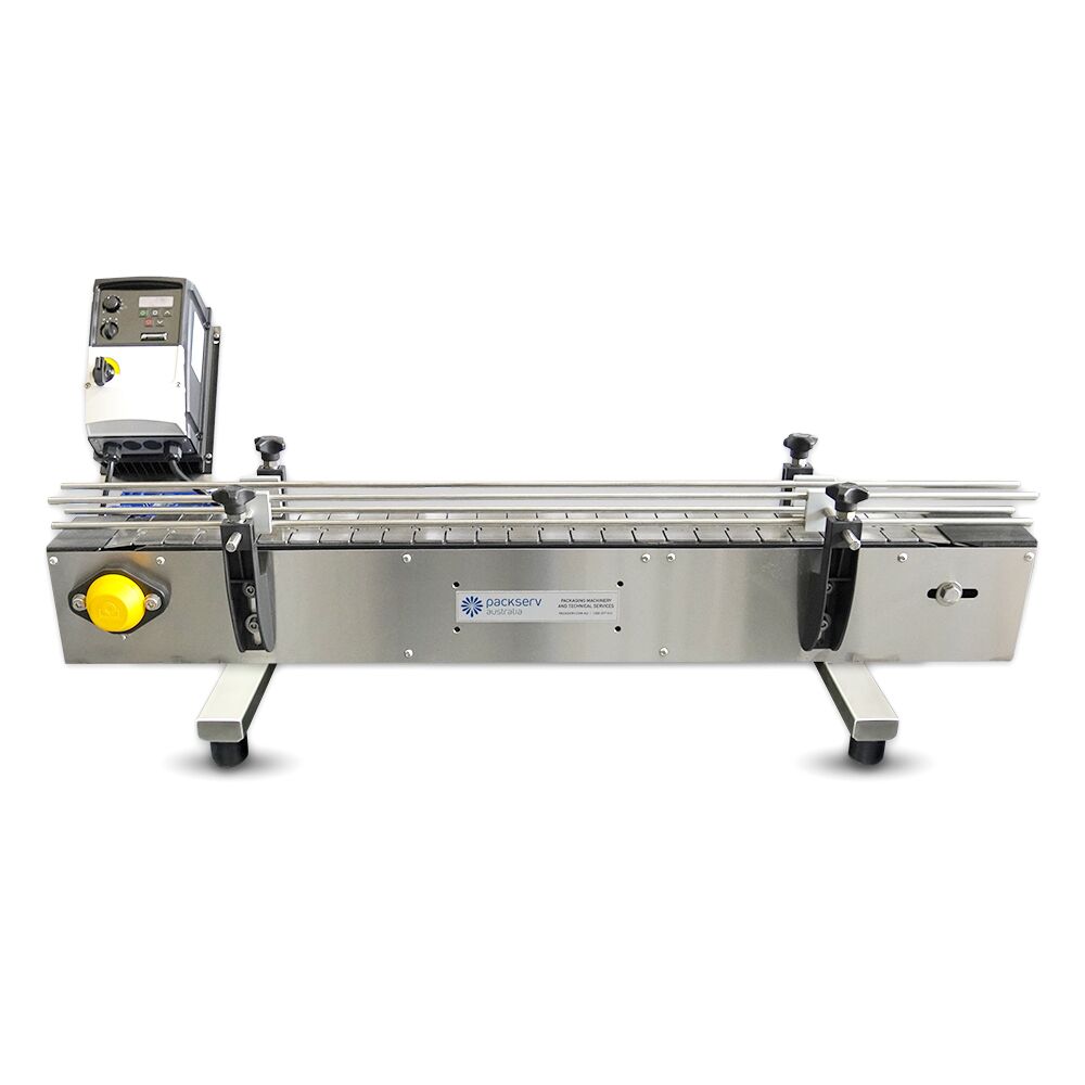 The Packserv PSC-6-1.2 Benchtop Slat Conveyor is a compact conveyor generally used to aid in forms of marking/coding or where a product needs to be run at a certain speed past another machine.